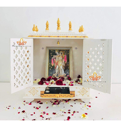 White Wooden Shrines,Temple, Hand Painted Handcrafted Pooja Mandir with shutters & drawer (Large) | Shop now