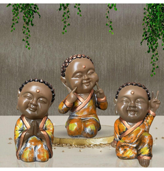 Handmade Cute Baby Buddha and Gold Buddha Statues, Buddha Gifts, Housewarming Gifts for Home Decor (Pack of 3, Multicolour)