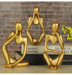 Decorative Abstract Thinker Men Statue Set of 3 Modern Art Showpiece Sculpture (Gold, 13 cm x 6 cm) | Decoration Items for Home Decor