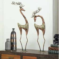Antique Iron Pair of Deer Hand-painted golden finish for tabletop decoration | Decorative Showpiece Set of 2