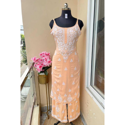 Beautifully crafted sleeveless, stylish kurti palazzo set with handwork chikankari embroidery