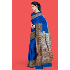 Madhubani hand Painting Saree on Natural Tussar Silk | Handpainted saree | Silk mark certified saree | Sari Madhubani Hand Painted - Tussar Ghicha | Blue Saree