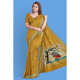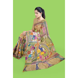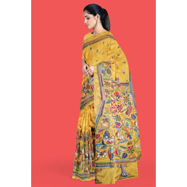 Madhubani hand painting Saree on Natural Tussar Silk | Handpainted saree | Silk mark certified saree | Sari Madhubani Hand Painted - Tussar Ghicha | Mustard ...