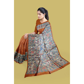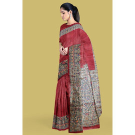 Madhubani hand painting Maroon Saree on Natural Tussar Silk | Handpainted saree | Silk mark certified saree | Sari Madhubani Hand Painted - Tussar Ghicha