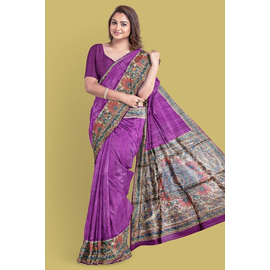 Madhubani hand painting Purple Saree on Natural Tussar Silk | Handpainted saree | Silk mark certified saree | Sari Madhubani Hand Painted - Tussar Ghicha
