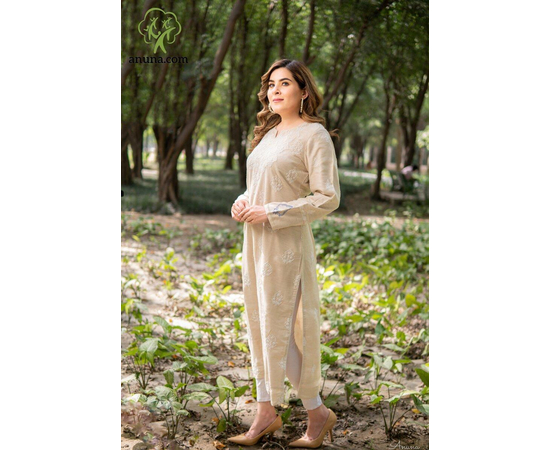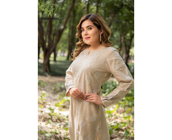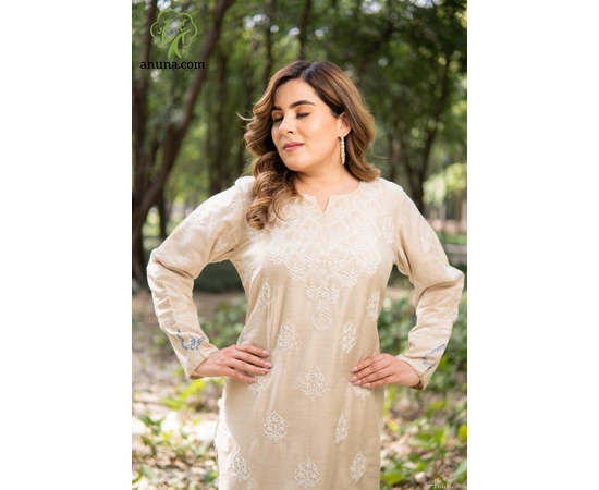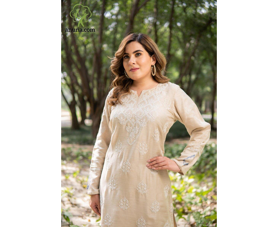 Content: Hello, fashionistas! We are thrilled to present our latest creation, the Lucknow Chikankari Hand Embroidery Kurti in sophisticated Beige color. Get ready to embrace the charm and elegance of Chikankari work, perfect for your festive and party wear needs.