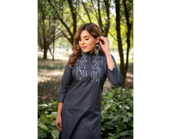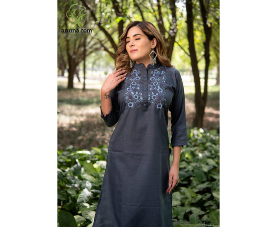 I love the combination of chikankari and muqaish work. The fabric is comfortable, and the grey color adds an understated elegance.