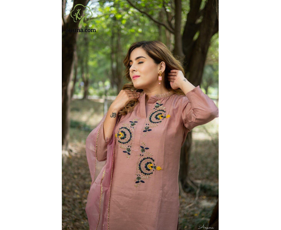 Content: We are thrilled to present our latest creation, the Zardozi Hand Work Kurti Set in an Onion Pink color. Get ready to mesmerize everyone with your impeccable style and grace. Let's make every occasion a memorable one.