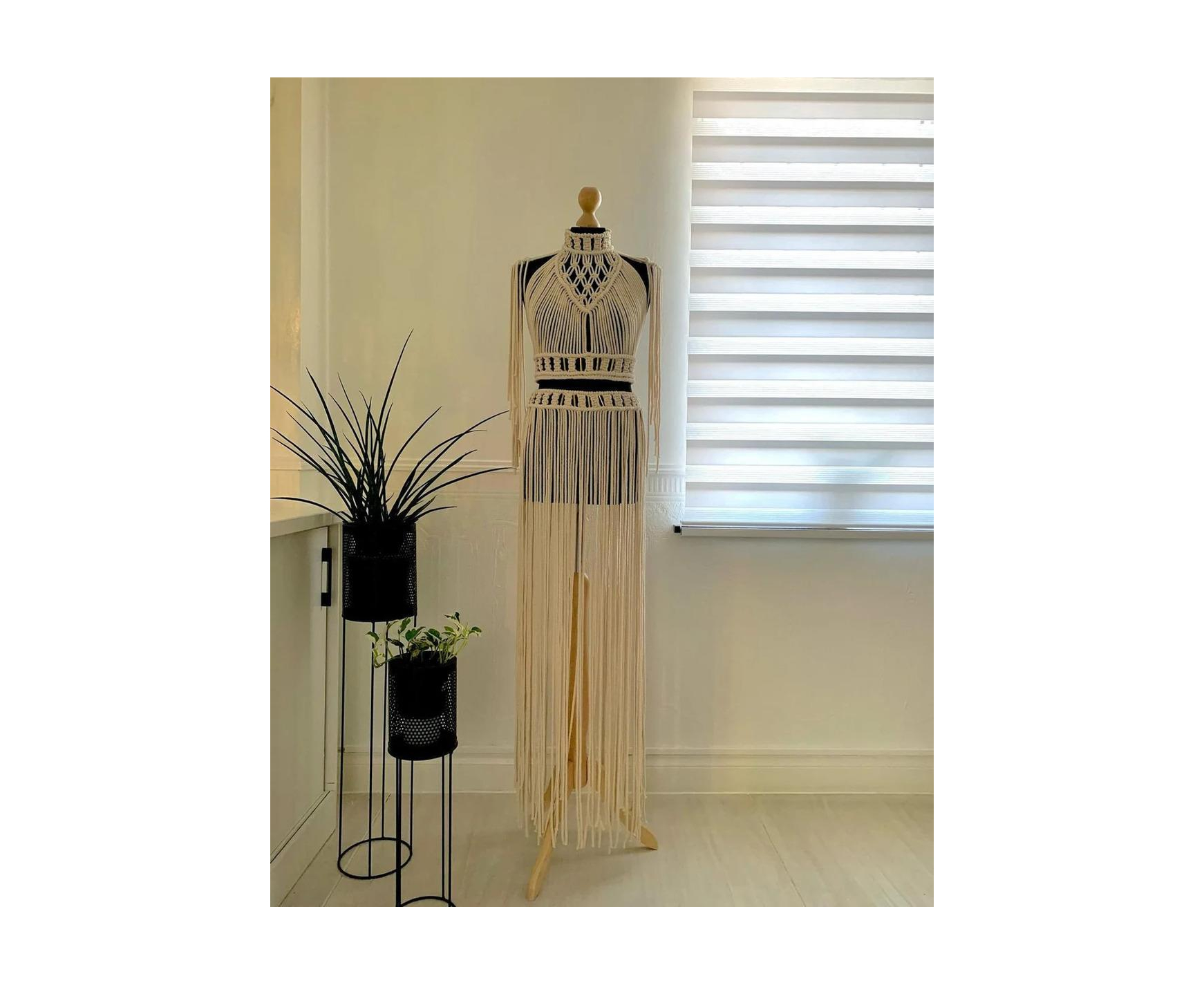 Dress is an elegant wear realized with traditional hand-knotted art of macrame.