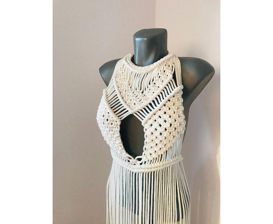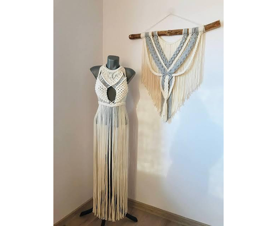 Dress is an elegant wear realized with traditional hand-knotted art of macrame.