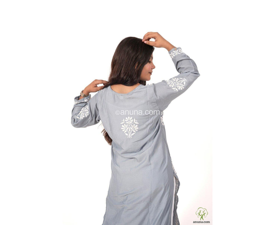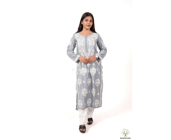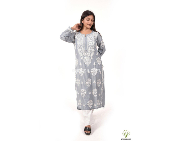 "Lucknow Chikankari Modal Grey Kurta – Handcrafted Embroidered Summer Wear Kurti for Women, Elegant and Stylish Handwork Kurta"