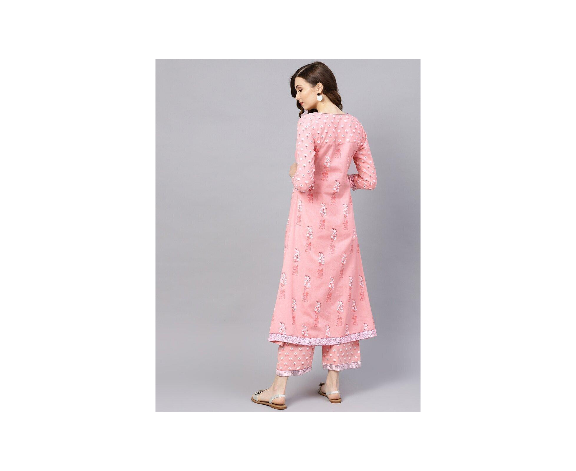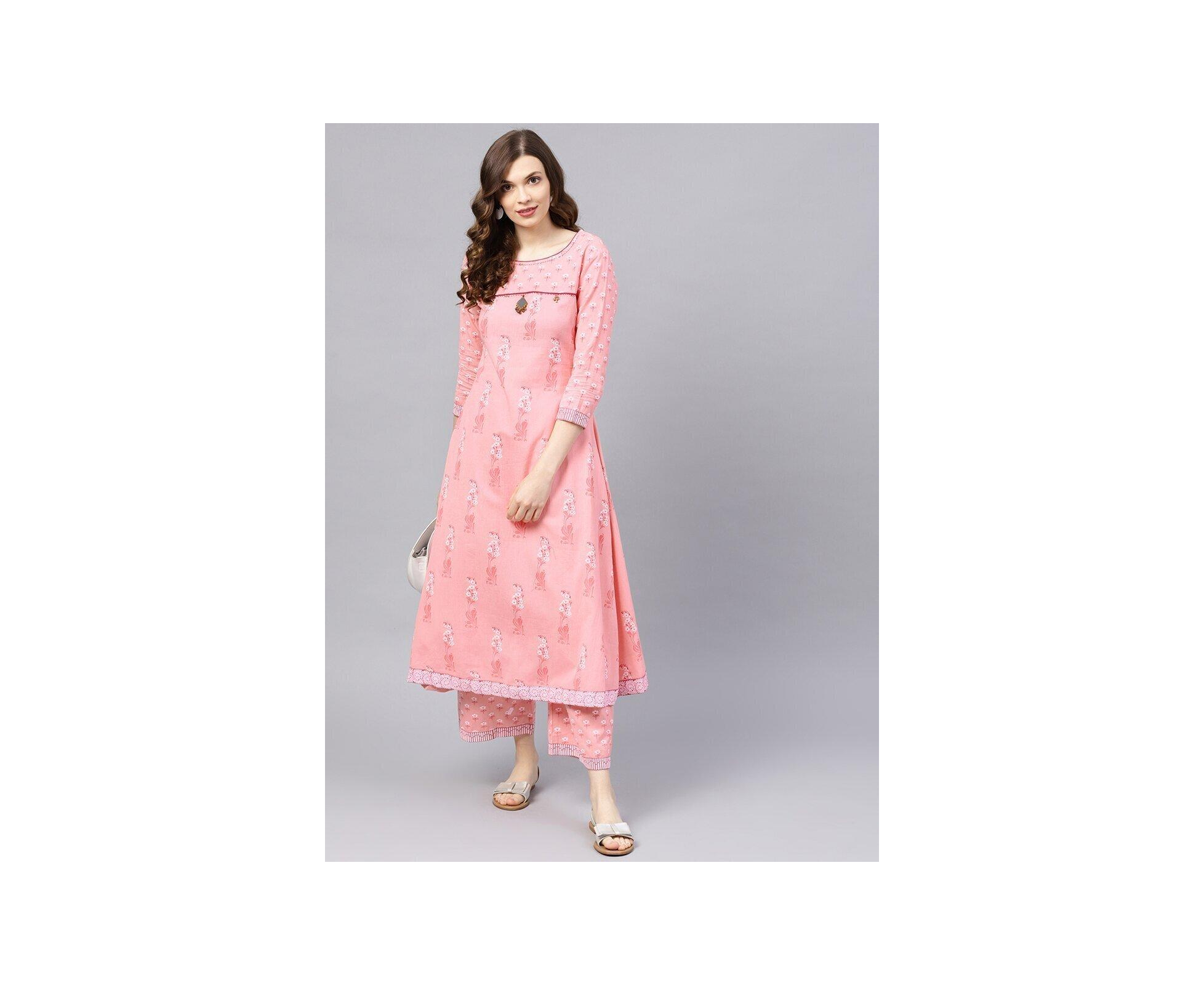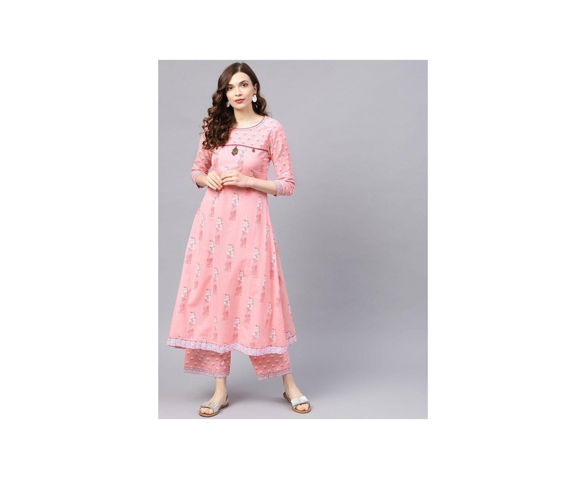 Women's Cotton Pink Printed Anarkali Kurta Palazzo Set, Bollywood style Pink kurti, Printed kurti, Ethnic wear, party wear Anarkali Frock