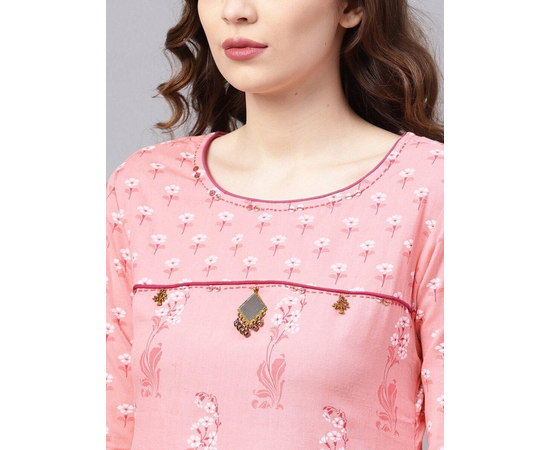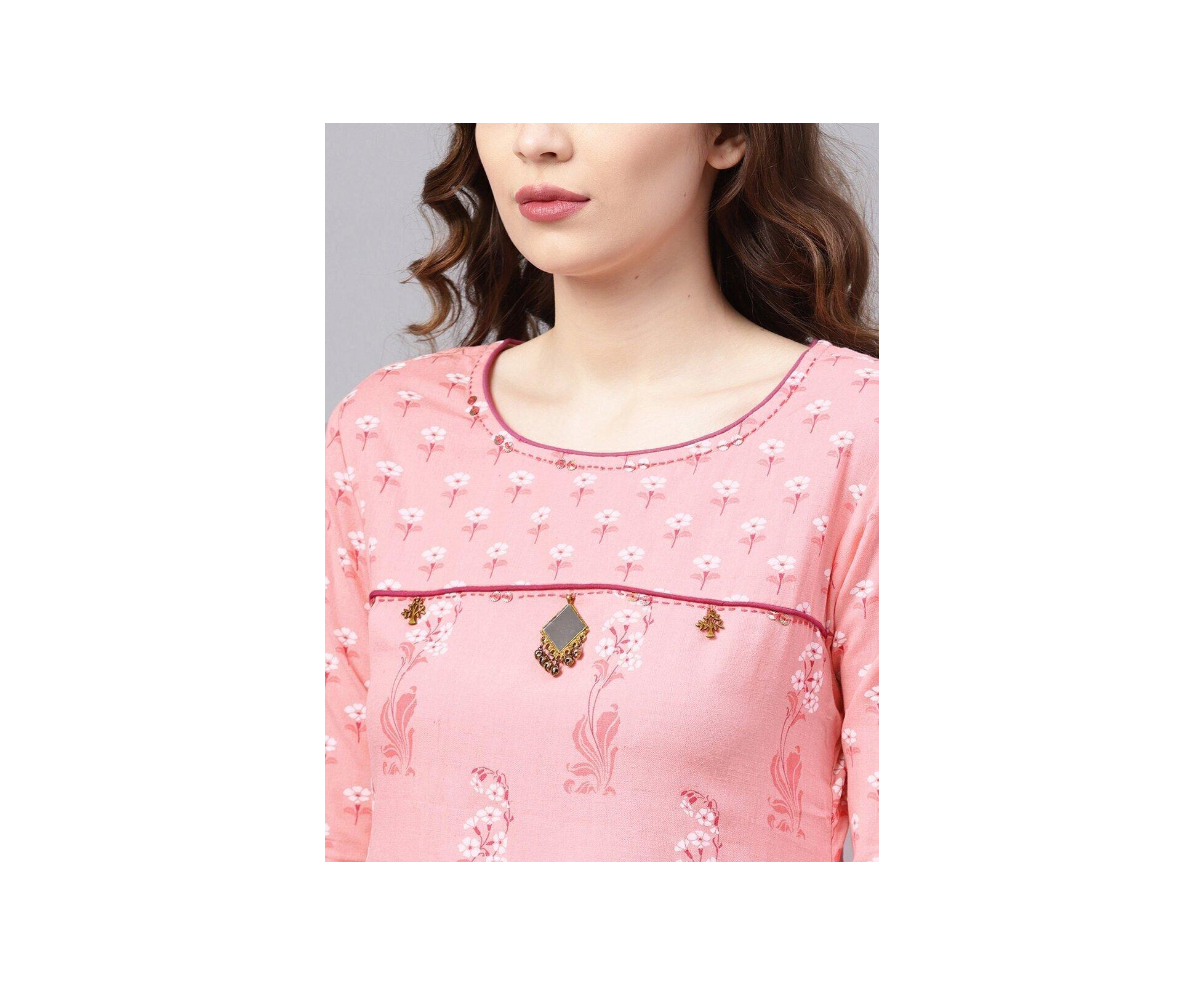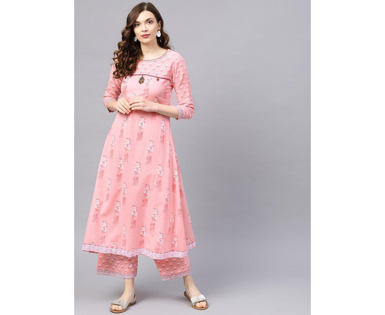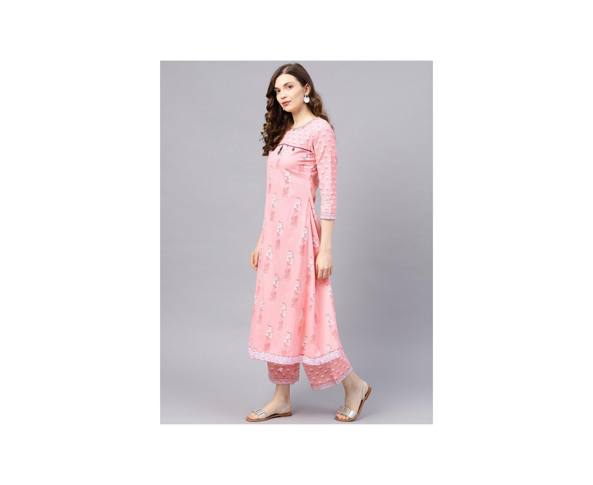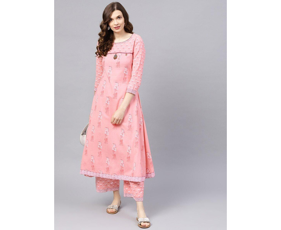 Women's Cotton Pink Printed Anarkali Kurta Palazzo Set, Bollywood style Pink kurti, Printed kurti, Ethnic wear, party wear Anarkali Frock