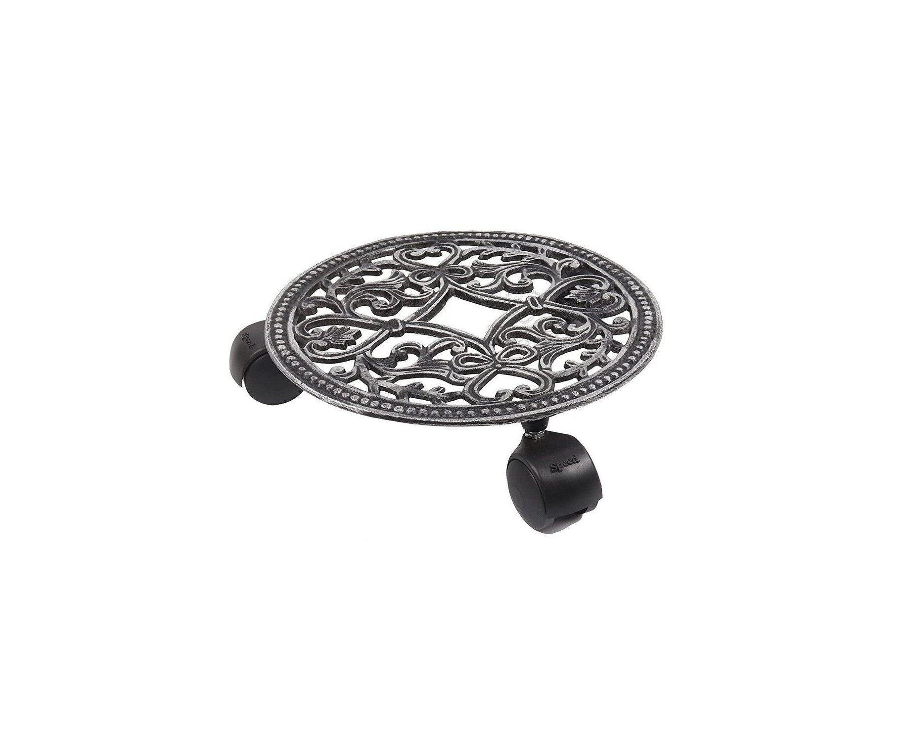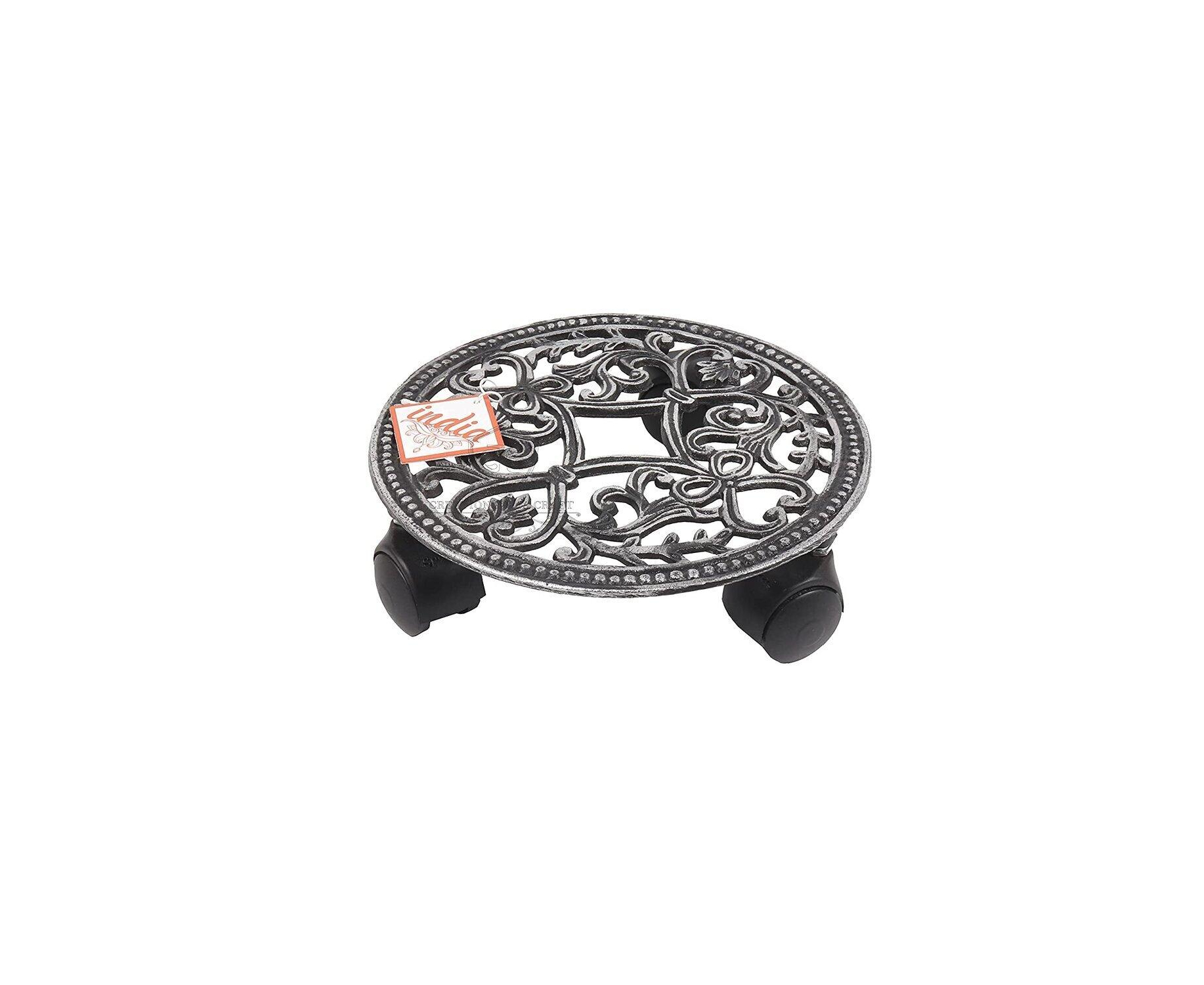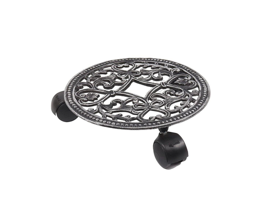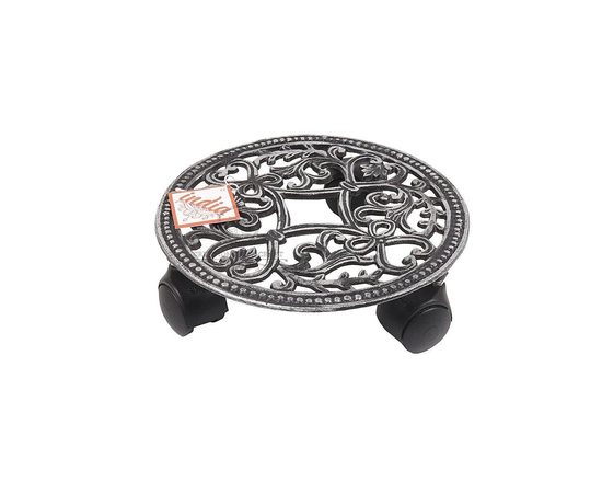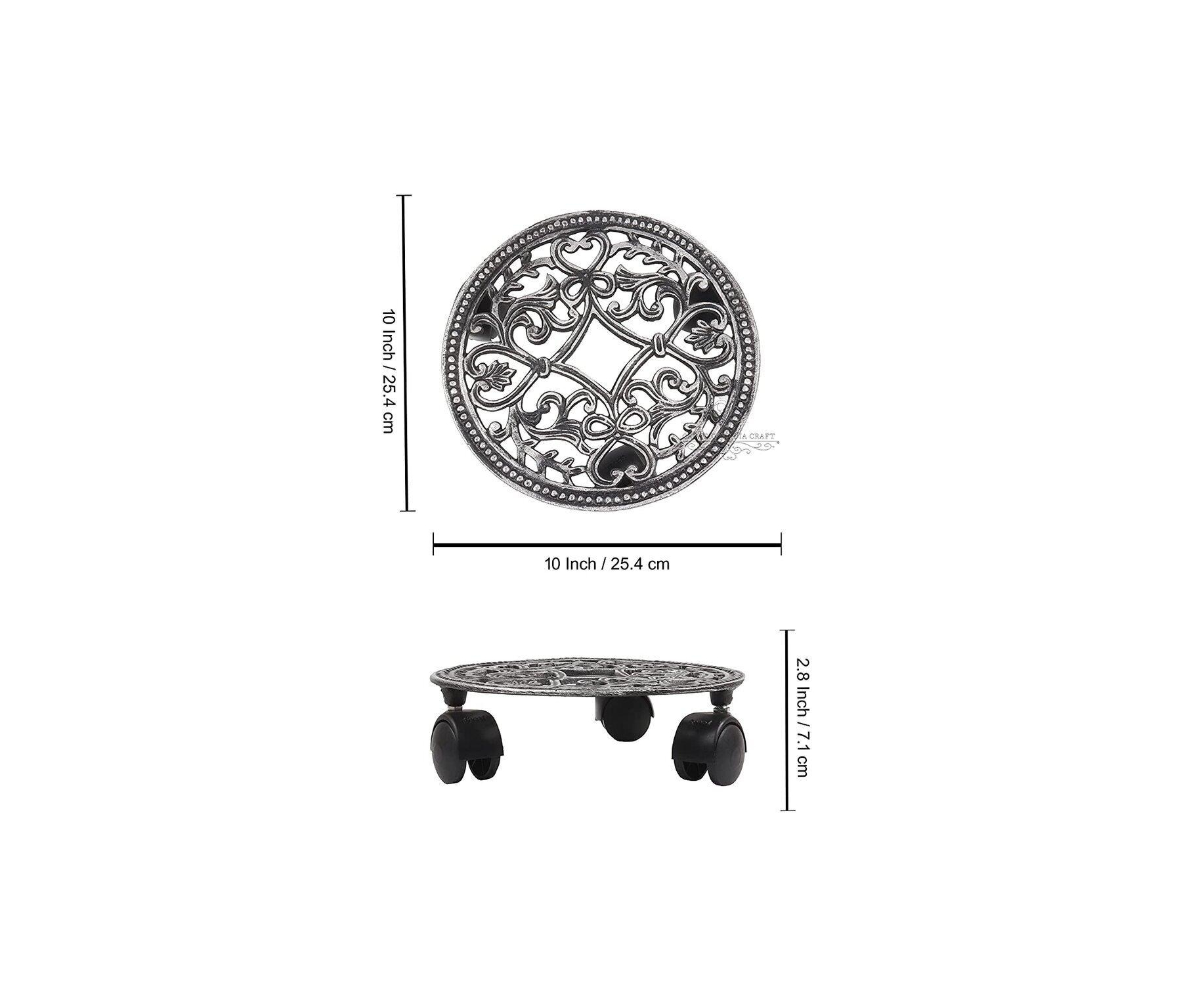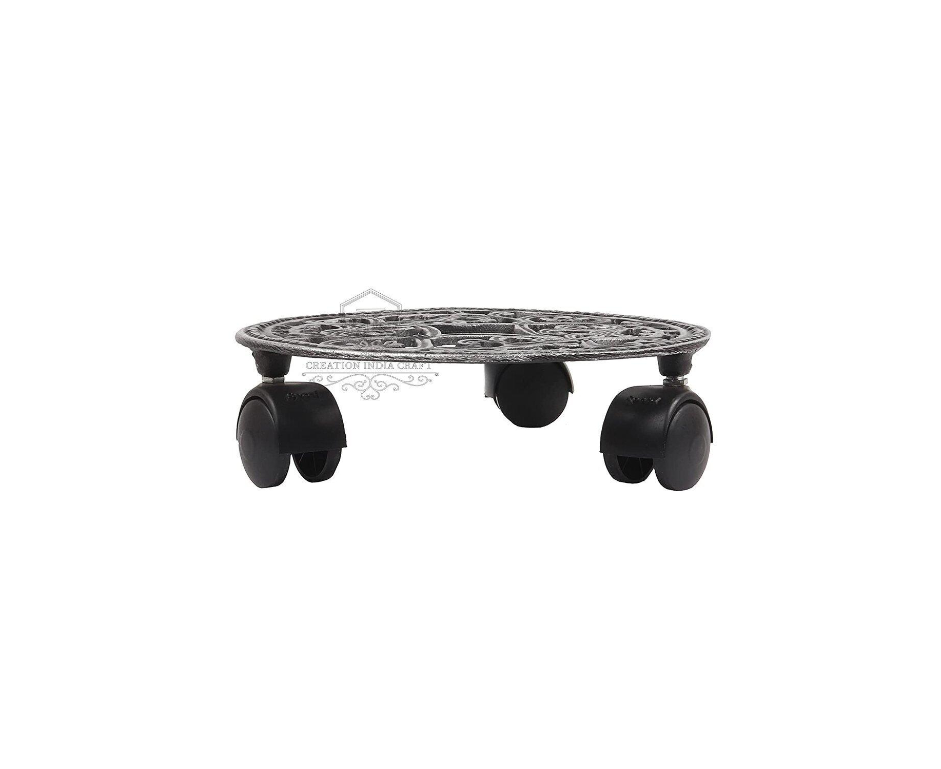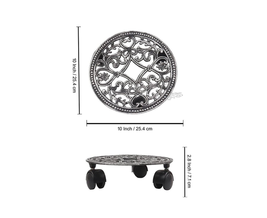 Creation India Craft Metal Plant stand with wheels, Flowerpot holder, Plant Pot Trolley Stand, Aluminum Flower Pot Base, Set of 1, Silver Flower vase stand