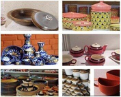 The Khurja pottery craft fascinates not only because of the form but also, the texture of the craft items. The potter of Khurja also excels with the delights use of warm autumnal colors like orange, brown and a special light red. There are fine harmonious blends of colors which makes it pleasing to the eye.