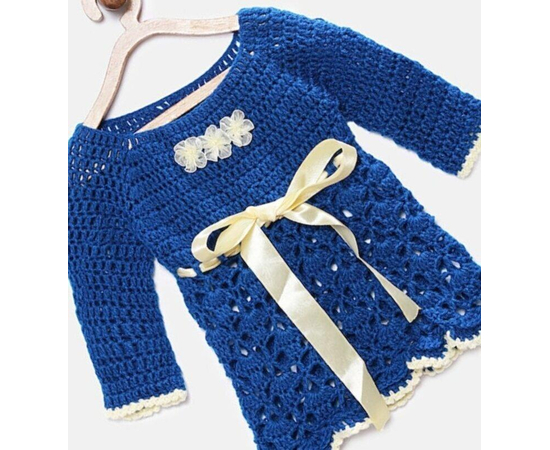 HANDMADE CROCHET BABY FROCK/CROCHETED BLUE FROCK WITH RIBBON/PARTY WEAR FROCK FOR BABIES