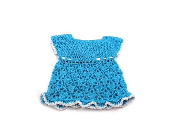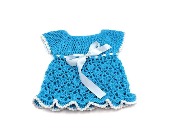Handmade Crochet Baby Girl Frock Lace Tunic With Ribbon In Light Blue Color