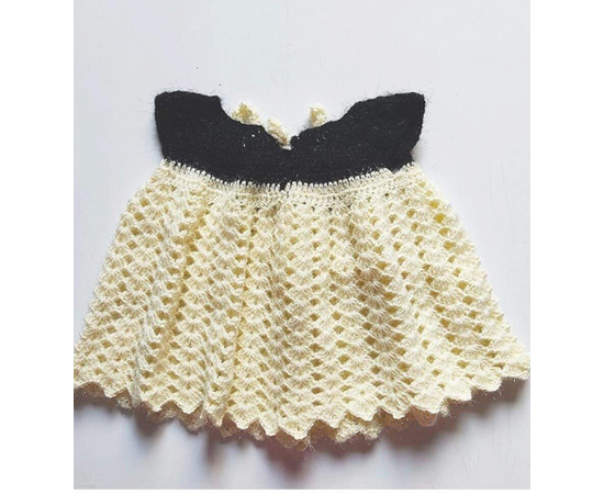 Handmade Crochet Baby Frock In Cream & Black | Party Wear Dress For Your Baby Girl