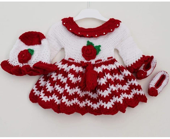Baby crochet Dress - Christmas Outfit for baby Girls - cute infant frock - party wear frock - red white crochet frock -Crocheted red & white frock cap booties