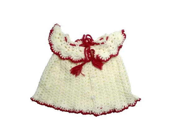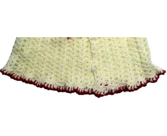 This is an exquisite piece made by crochet with 100% cotton yarn, for your little doll. It can be worn at parties and special events. It gives a new look and personality to your baby girl. It is made by pure, soft and the best quality material. Suitable for winter/semi winter.