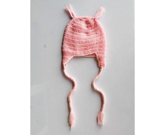 crochet flap hat, pompom hat, ear flap beanie, crochet girl hat, crochet hat with braids, newborn hat, baby beanie, crochet pink hat ,knit baby hat
