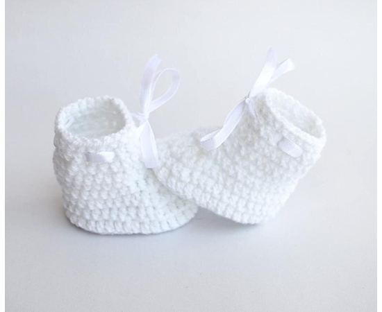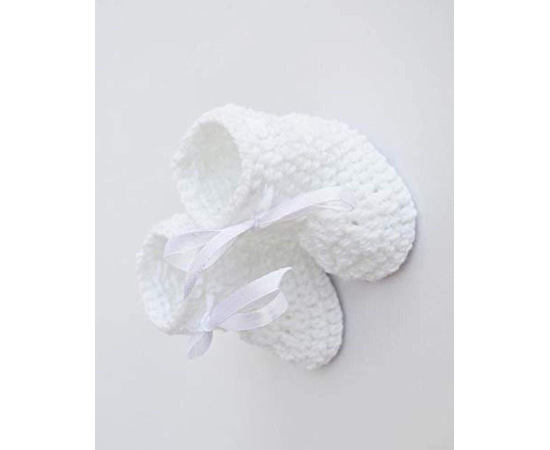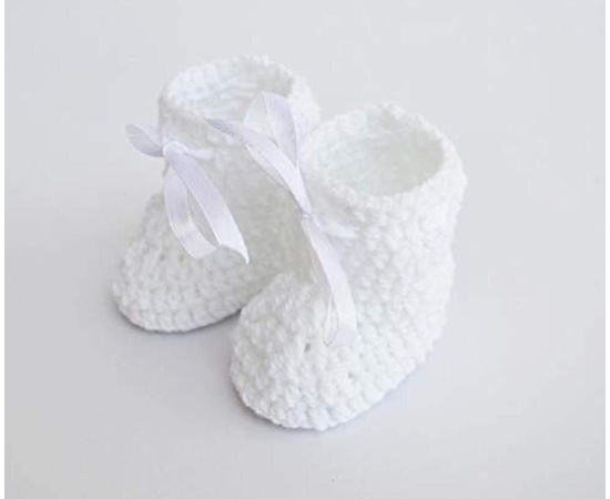 This product is made from crochet on the inside and outside and is finished in an attractive white color. The Booties can stretch up to 2 cms more than the size mentioned to fit your baby’s fast growing feet.