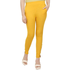 Cotton Lycra Blend Secret Pants Yellow Casual Trouser with 2 Pockets