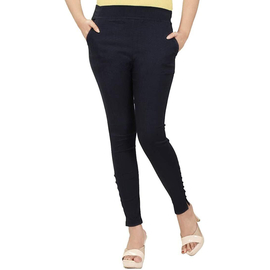 Cotton Lycra Blend Women Secret Pants Navy Blue Casual Trouser with 2 Pockets