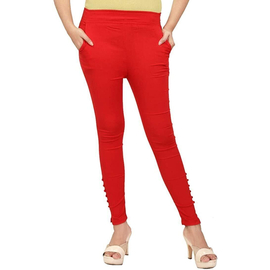 Cotton Lycra Blend Women Secret Pants Red Casual Trouser with 2 Pockets