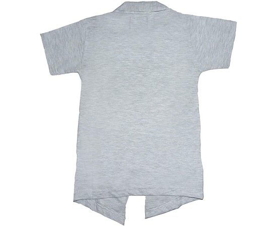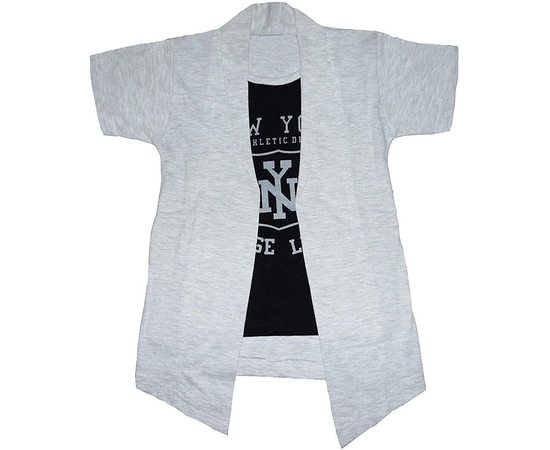 Boys Half Sleeve cotton white printed t-shirt with attached white melange jacket shrug.