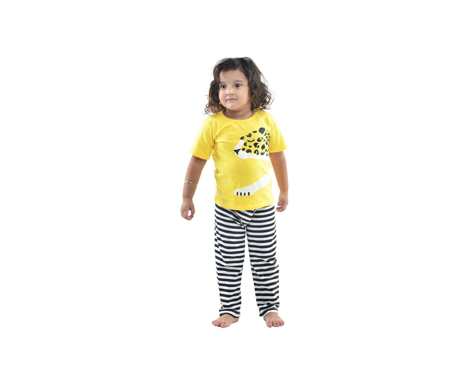 Boys Yellow Tiger Printed Pure Cotton Night suit | Modern style outfit for Kids