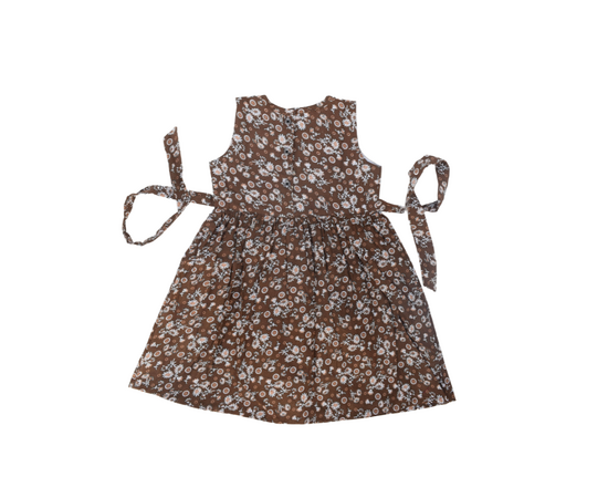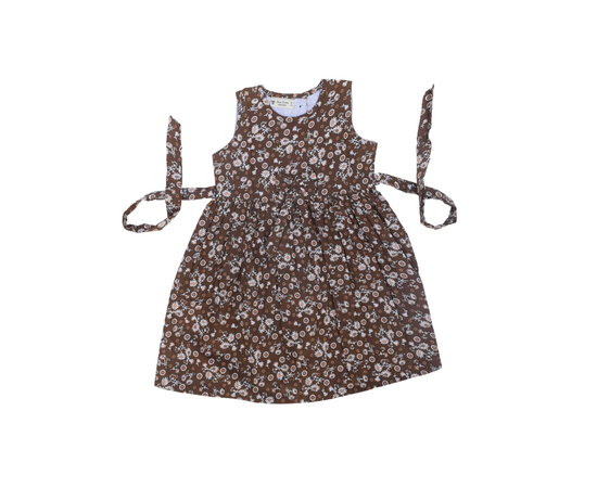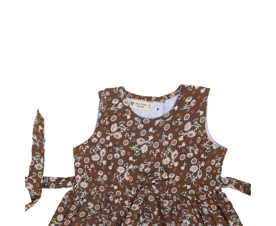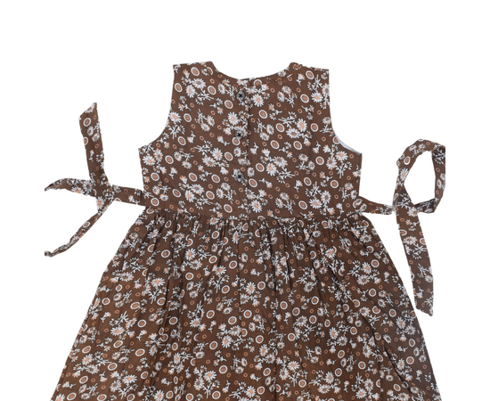 Brown color Floral print cotton sleeveless fit frock and flare causal dress for girls