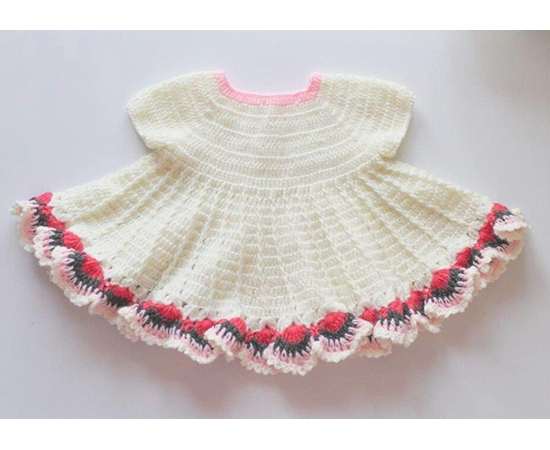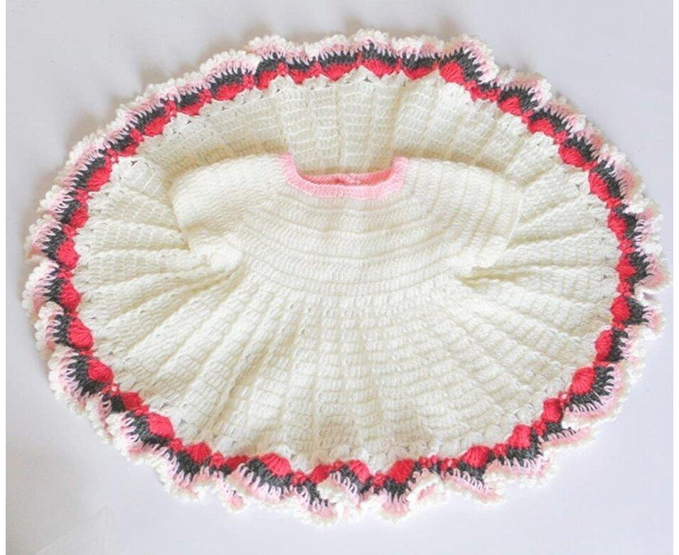 CROCHET BABY FROCK/WHITE CROCHET FROCK/PARTY WEAR FROCK FOR BABIES/Handmade Baby dress/Hand Crocheted white frock with multicolor border/Christmas Dress for babies
