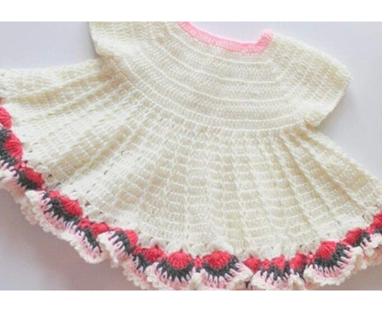 Adorable baby girl dress, crocheted from pure cotton yarn. This dress is a perfect combination of style and comfort, allowing them to feel comfortable and not restricted.