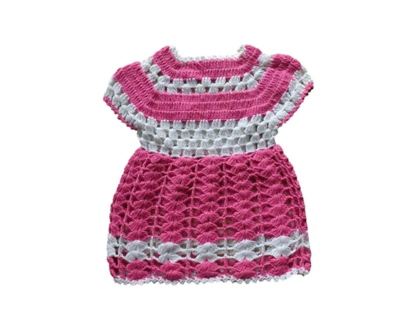 CROCHET BABY FROCK/PINK WHITE CROCHET FROCK/Hand crocheted lace frock/party wear baby dress