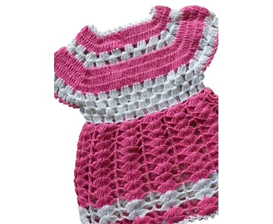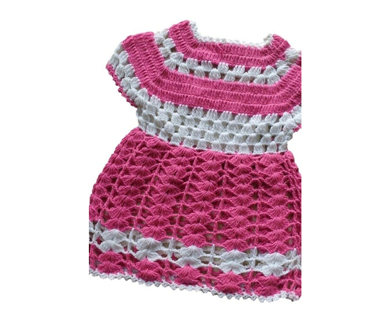 Adorable baby girl dress, crocheted from pure cotton yarn in pink color. This dress is a perfect combination of style and comfort, allowing them to feel comfortable and not restricted.
