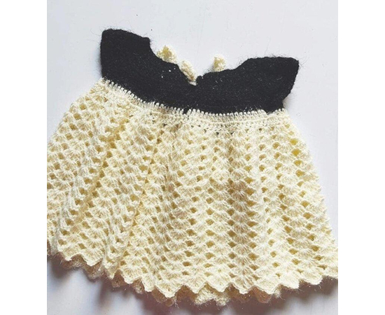 CROCHET BABY FROCK/CREAM & BLACK COLOR CROCHETED FROCK/PARTY WEAR FROCK FOR BABIES