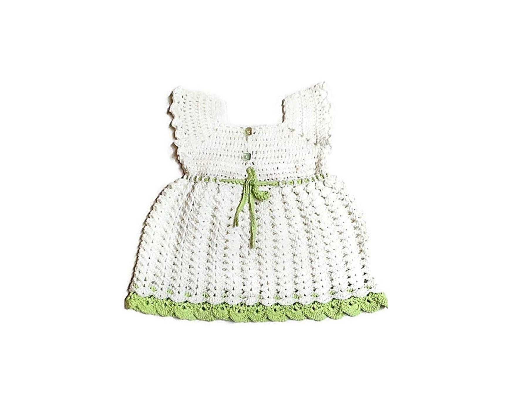 Handmade Crochet baby dress, white baby dress, christening dress , crochet infant outfit, crochet baby clothes, baby girl dresses, floral baby dress