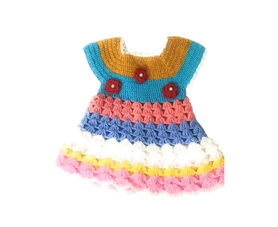 Handmade Crochet Baby Frock, Colorful Hand Knitted Outfit For Baby Girls, Multicolor Hand crocheted baby frock, Gift for baby girl