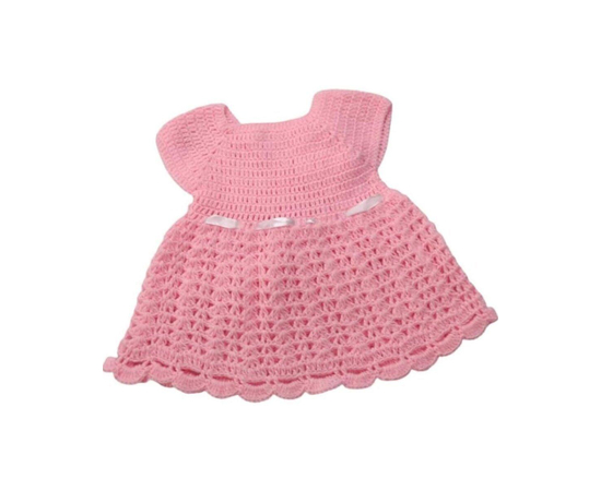 White Flower Decorated Pink Rose Crochet Lacy Frock । Summer Baby Girl Outfit | Hand Crocheted Party wear dress for baby girl (6-9 Months)