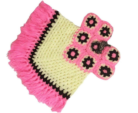 This is an exquisite piece made by crochet with 100% cotton yarn, for your little doll. It can be worn at parties and special events. It gives a new look and personality to your baby girl. It is made by pure, soft and the best quality material. Suitable for winter/semi winter.