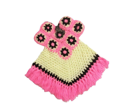 Crochet Poncho Top, Crochet Kid Poncho With Fringes, Baby Girl Crocheted Frock, Knitted Poncho, Knit Poncho Granny Square kid tops