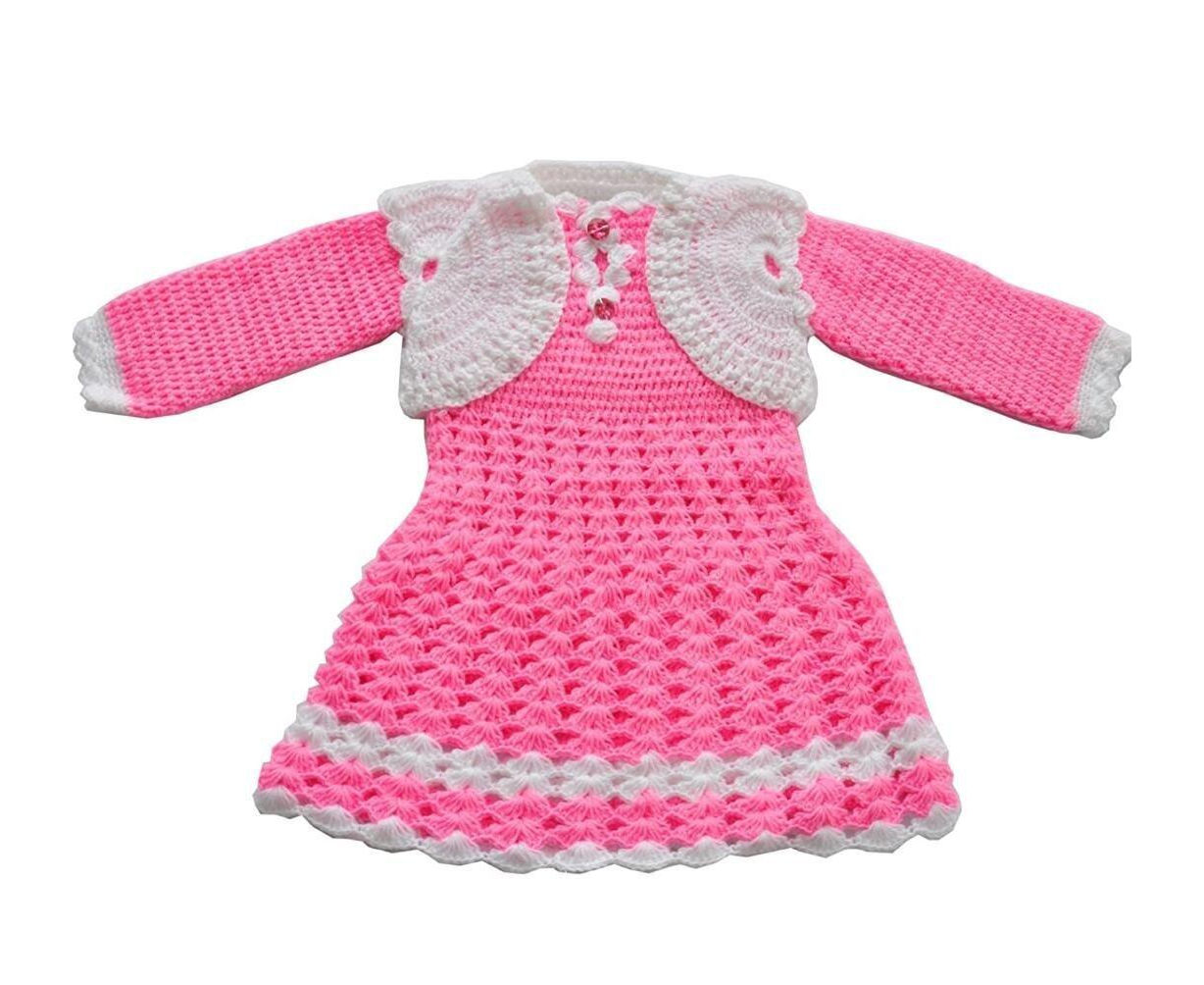 This is an exquisite piece made by crochet with high quality cotton, for your little doll. It can be worn at parties and special events. It gives a new look and personality to your baby girl. It is made by pure, soft and the best quality material. Suitable for winter/semi winter.