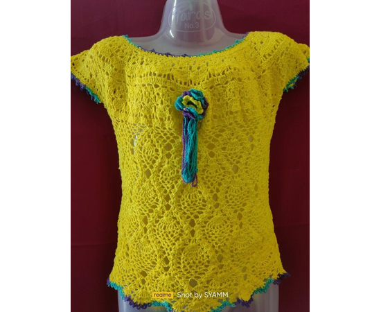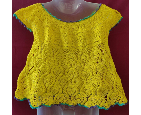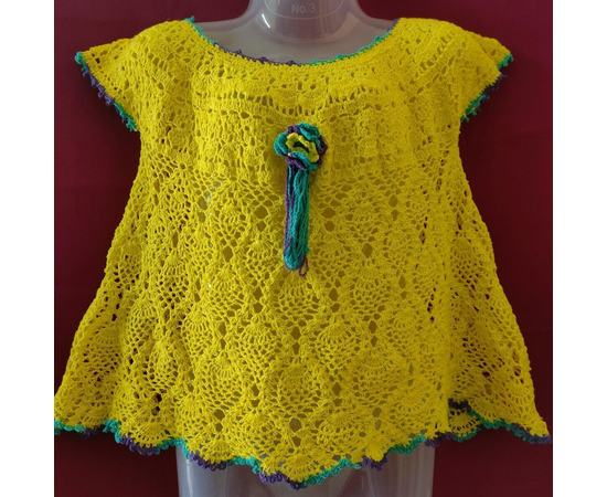 Adorable baby girl dress, crocheted from pure cotton yarn in yellow color, decorated with crocheted flower in the front. This dress is a perfect combination of style and comfort, allowing them to feel comfortable and not restricted.