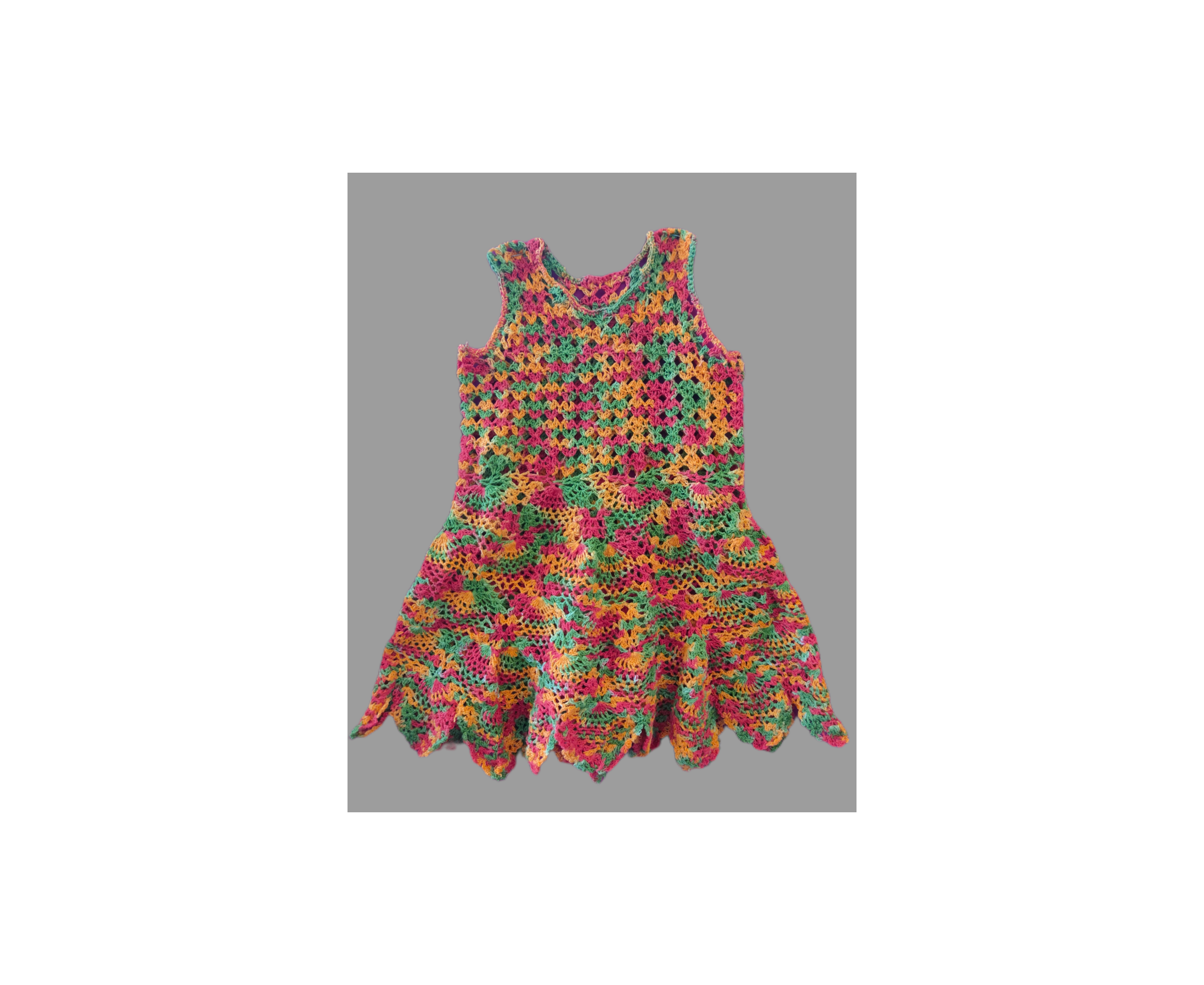 Crochet Baby Frock, Colorful Hand Knitted Outfit For Baby Girls, Multicolor cute frock, Handmade, Baby Apparel, Knit Clothing