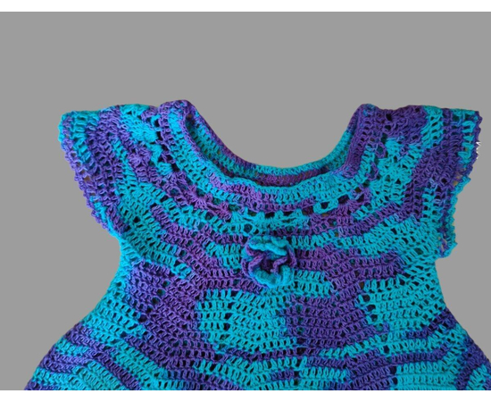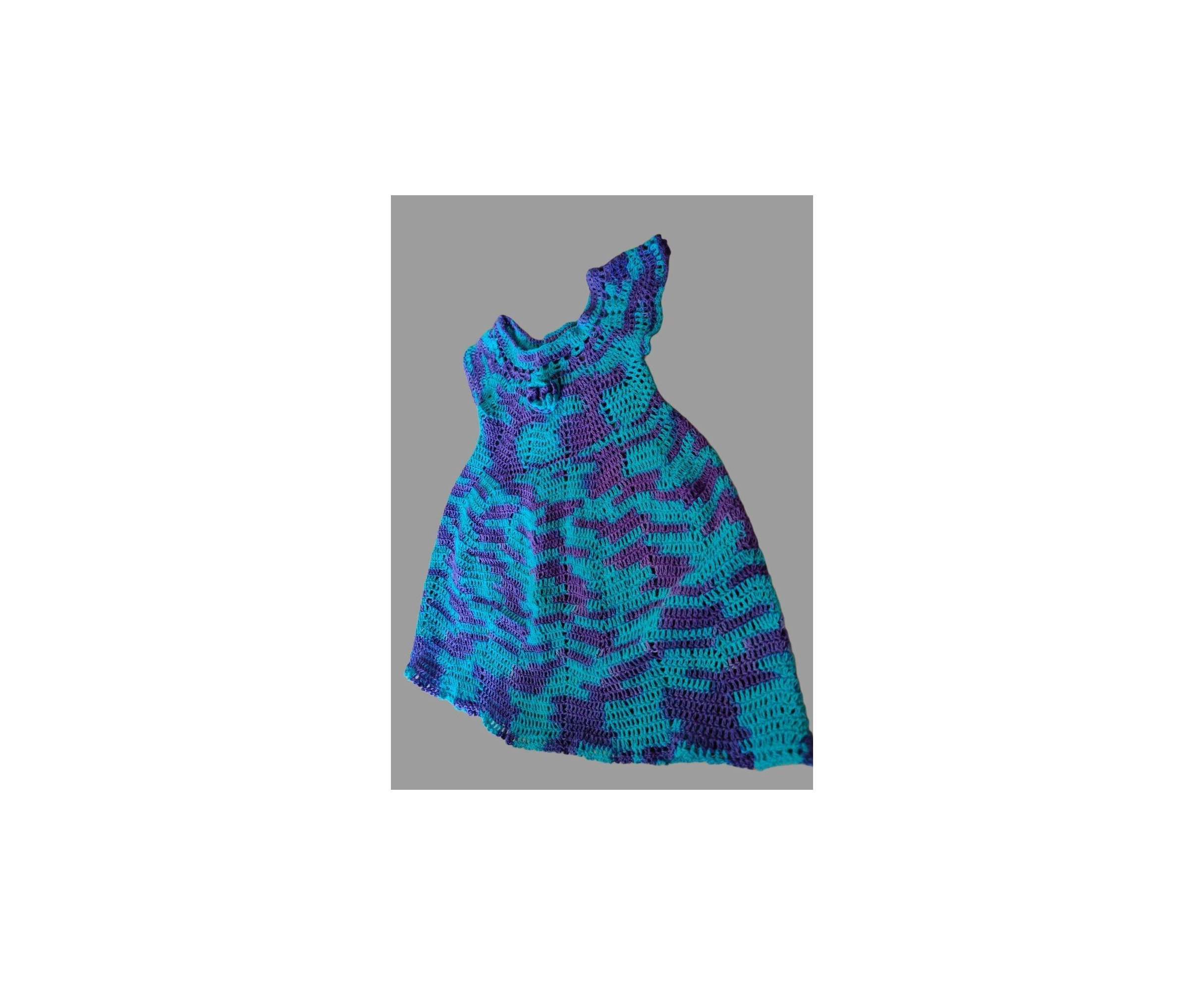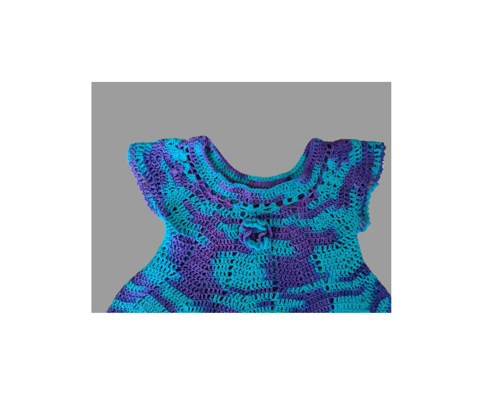 Handmade crochet baby girl dress | blue lace Baby frock | Lace tunic with flower | photo session dress