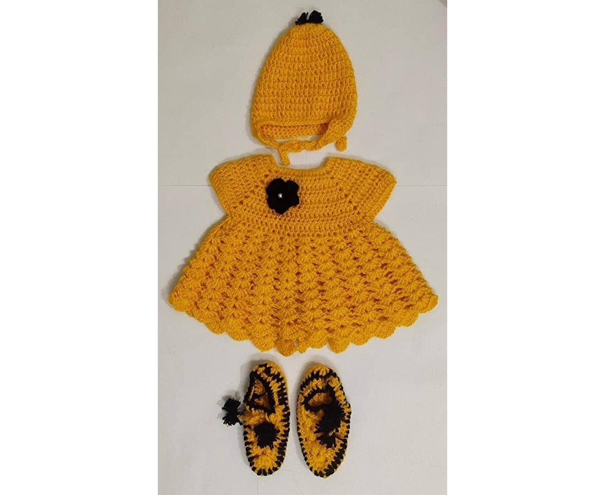 This frock is totally handmade, and the best quality Soft yarn is used which is suitable for baby skin. Buy this now and Motivate Indian hand Knitters and help them with their livelihood.