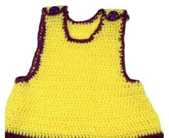 This is an exquisite piece made by crochet with 100% cotton yarn, for your little doll. It can be worn at parties and special events. It gives a new look and personality to your baby girl. It is made by pure, soft and the best quality material.