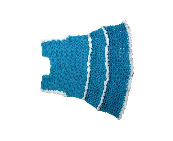 Flower kids Dress, 1970's vintage style, crocheted in white and Blue 100% pure Crochet frock, gift for baby girl, handmade, hand crafted (9-12 Months)