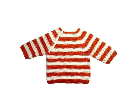 Crochet baby sweater cardigan baby gift, baby shower, photo prop, red off-white baby striped top, handmade crochet top